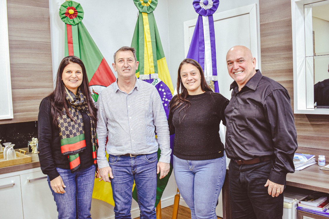 Antes da palestra, a jornalista, acompanhada pelo ex-prefeito de Jacutinga, Beto Bordin, foram recebidos pelo prefeito Jones Roberto Cecchin em seu gabinete.
