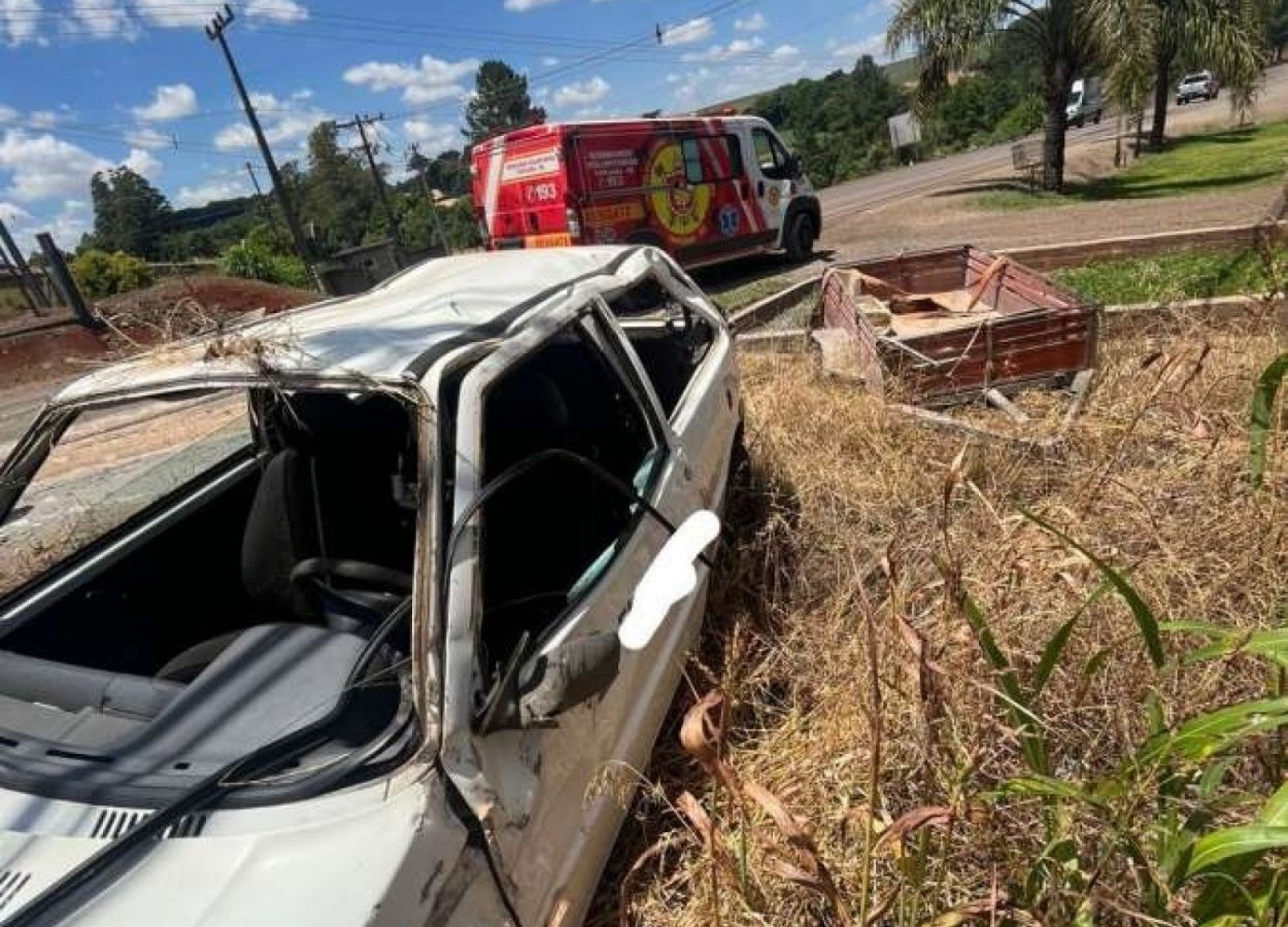 Os Bombeiros Voluntários de Tapejara atenderam nesta quinta-feira (20), um acidente de trânsito na ERS-463, nas proximidades do Tibiri, após populares acionarem a equipe para uma ocorrência de saída de pista seguida de capotamento.