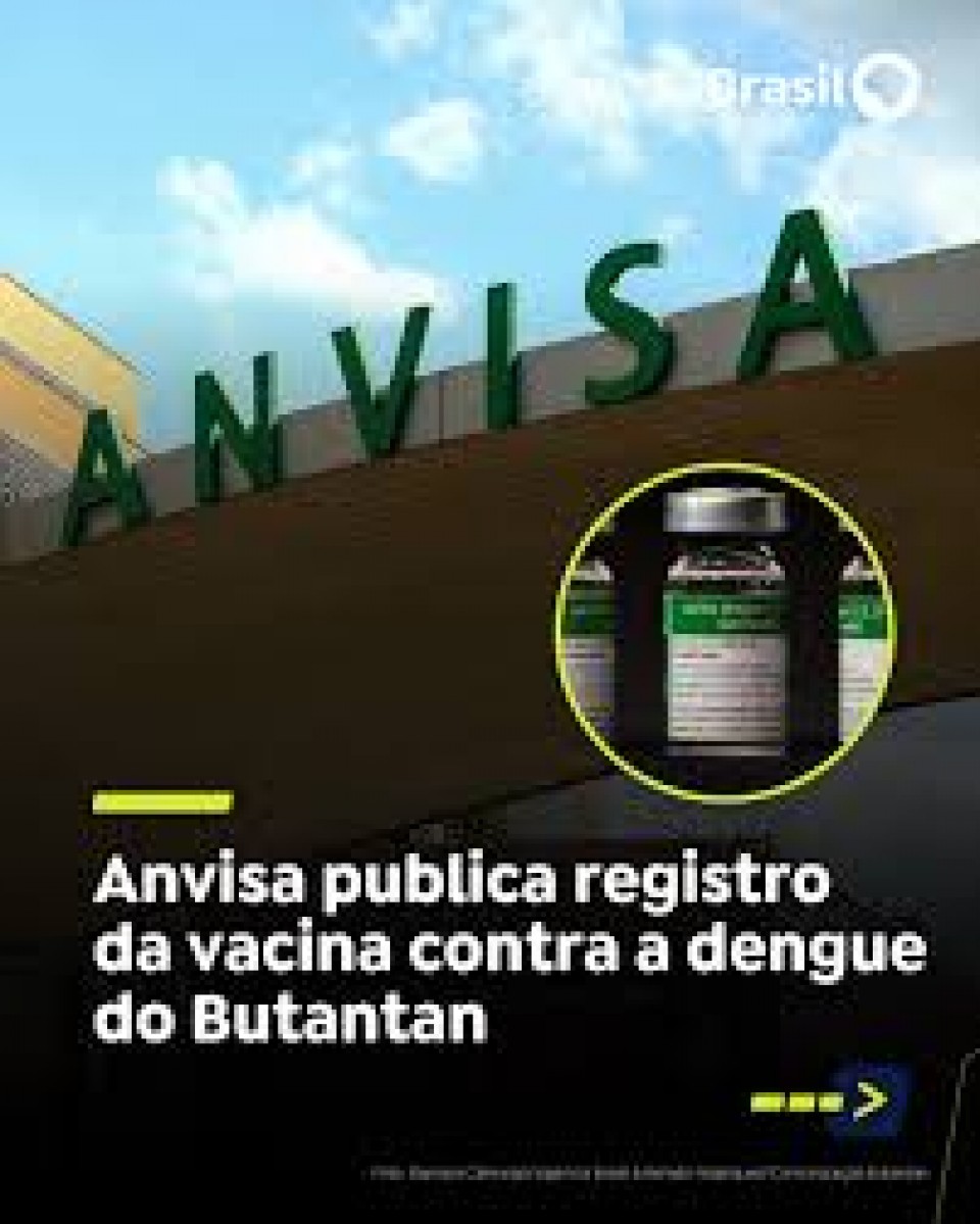 A Agência Nacional de Vigilância Sanitária (Anvisa) publicou nesta segunda-feira (08) no Diário Oficial da União o registro da vacina contra a dengue desenvolvida pelo Instituto Butantan.