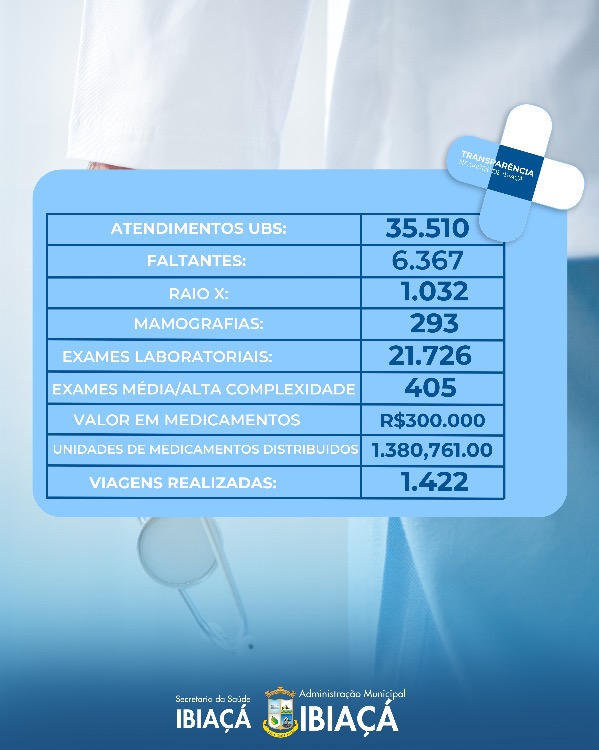 Os dados fazem parte do programa Transparência na Saúde de Ibiaçá.