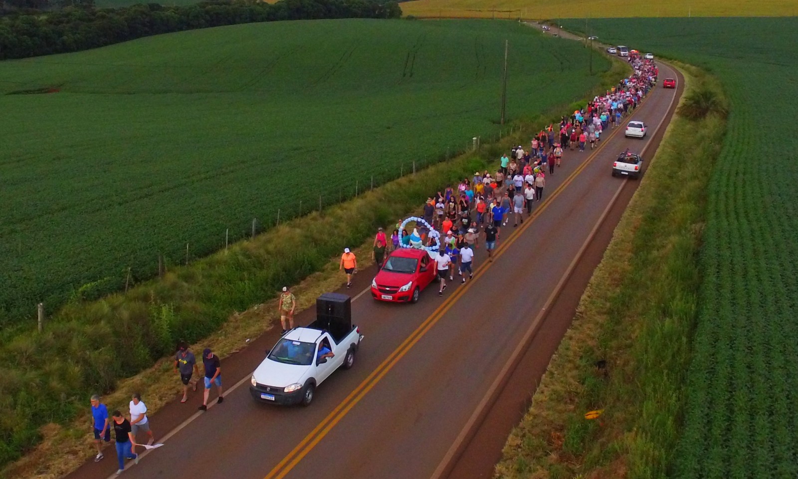 O trajeto de nove quilômetros teve início às 18h no Trevo das Três Porteiras e percorreu a ERS-467 até o Santuário de Ibiaçá. Durante todo o percurso, os fiéis contaram com suporte de policiamento, hidratação, sinalização e ambulância, garantindo a tranquilidade e segurança dos participantes. Pela primeira vez, a caminhada foi realizada em um sábado, medida tomada para evitar os riscos associados ao intenso tráfego de caminhões durante os dias úteis.