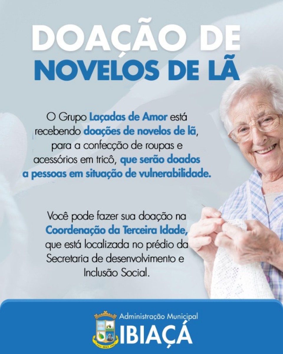 O Grupo Laçadas de Amor, vinculado ao Grupo Idade Feliz – Terceira Idade de Ibiaçá, segue desenvolvendo um trabalho voltado à confecção de roupas e acessórios em tricô. Para dar continuidade às atividades, o grupo está arrecadando doações de novelos de lã.