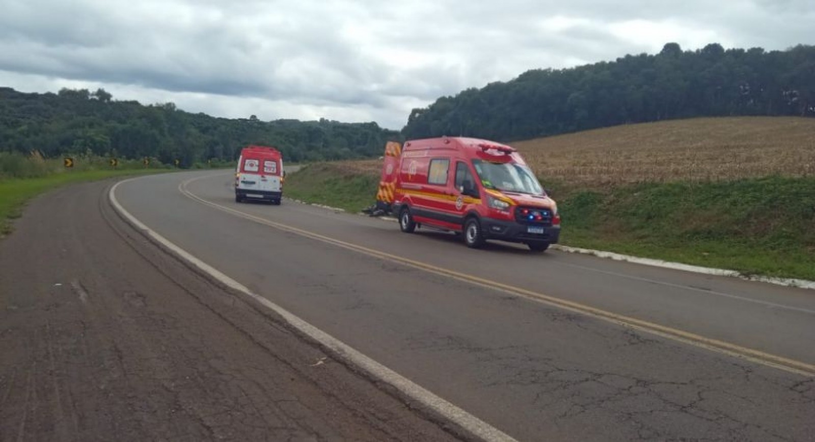 Um homem de 26 anos ficou ferido após um acidente envolvendo um caminhão e uma motocicleta na BR-285, em Lagoa Vermelha.