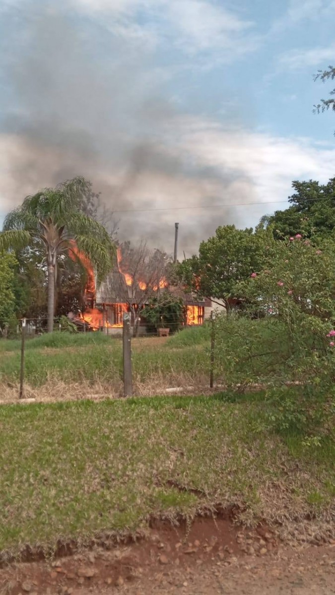 Os Bombeiros Voluntários atenderam uma ocorrência de incêndio em um galpão desativado em Sananduva.
