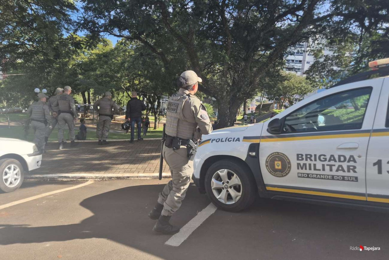 Dois grupos de indígenas entraram em conflito, na tarde desta quinta-feira (30), na área central de Tapejara. A ocorrência teve início próximo a uma agência bancária e se estendeu para a área interna da Praça Central Sílvio Ughini.