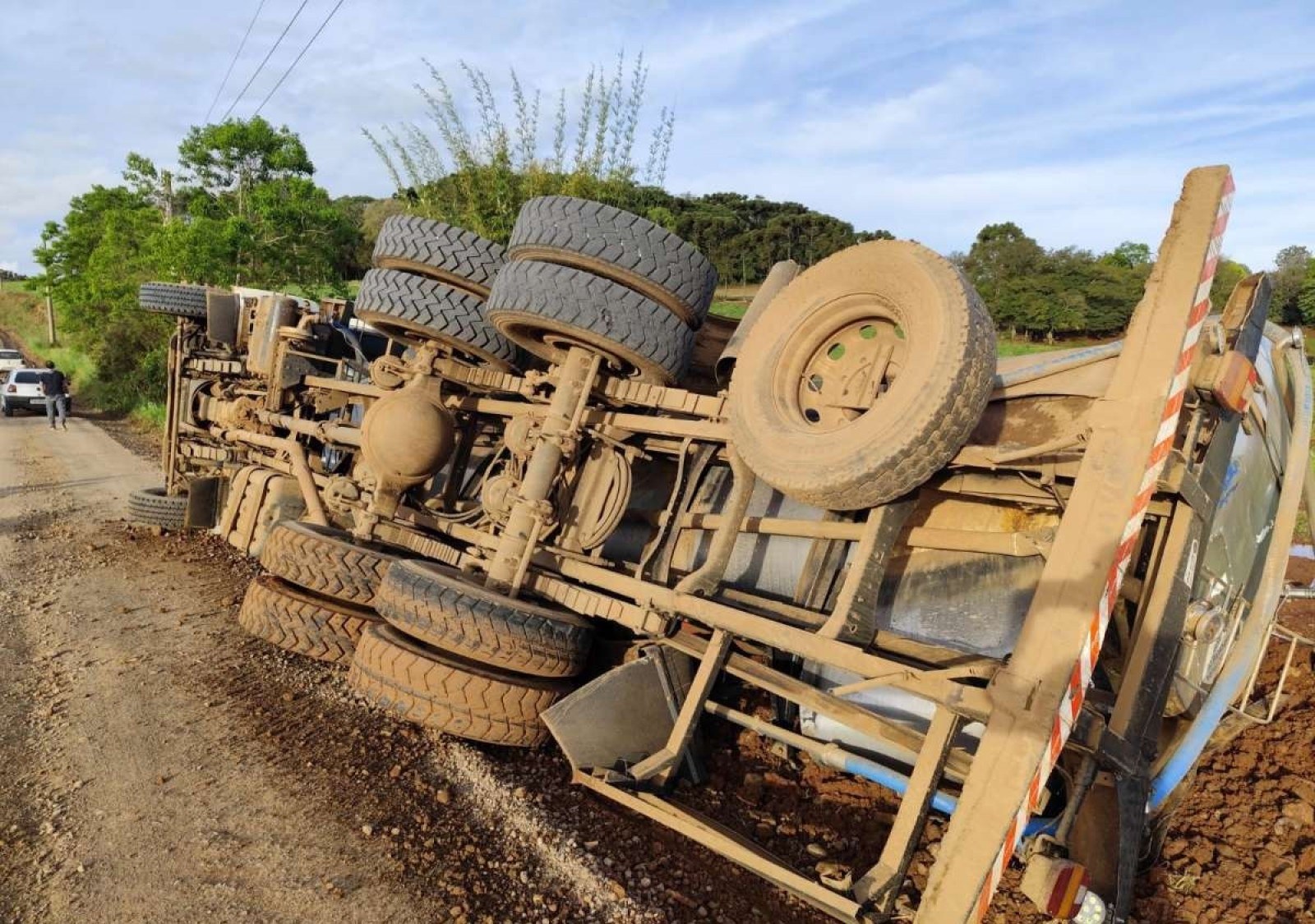 Um caminhão de leite tombou na RS-428, em trecho próximo à divisa entre os municípios de Tapejara e Água Santa, na tarde desta quarta-feira (1º).