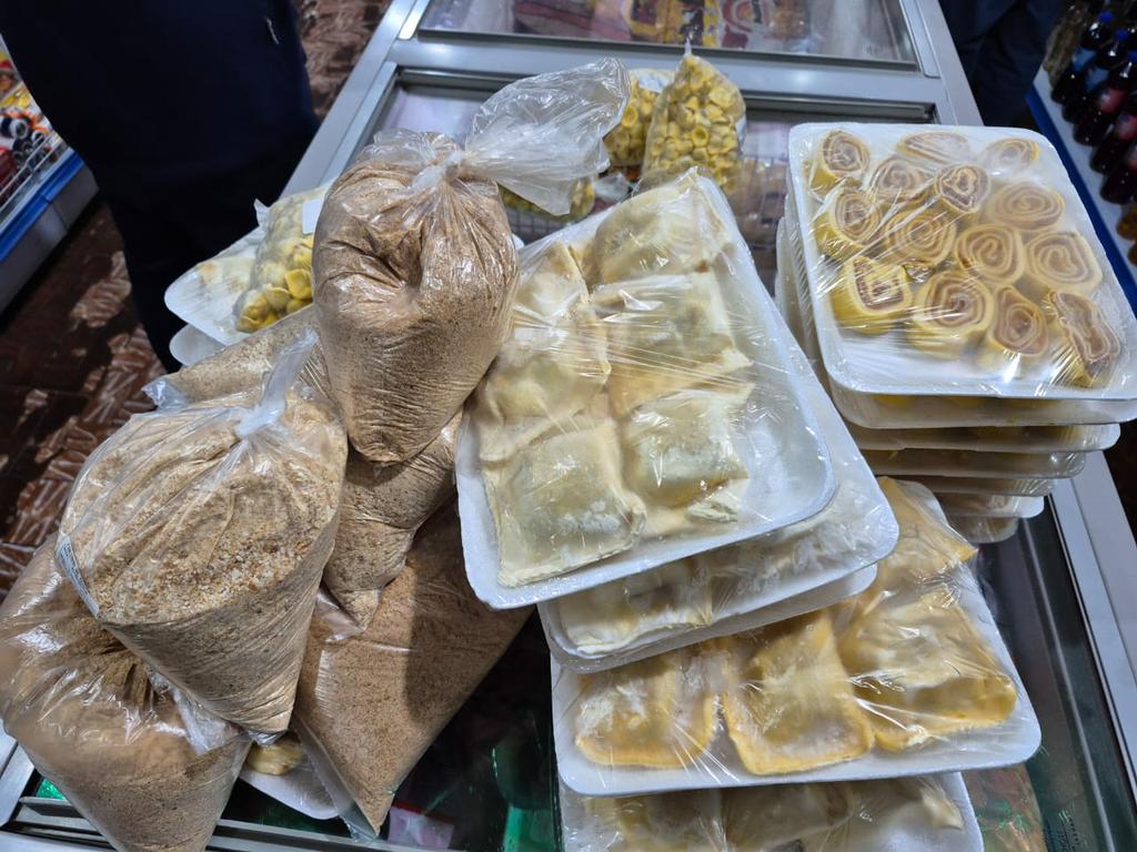 Entre os produtos apreendidos estão carne, queijo e mel colonial, massas caseiras, salgados, conservas, molhos, embutidos, iogurtes, além de unidades de álcool de comercialização proibida em supermercados.