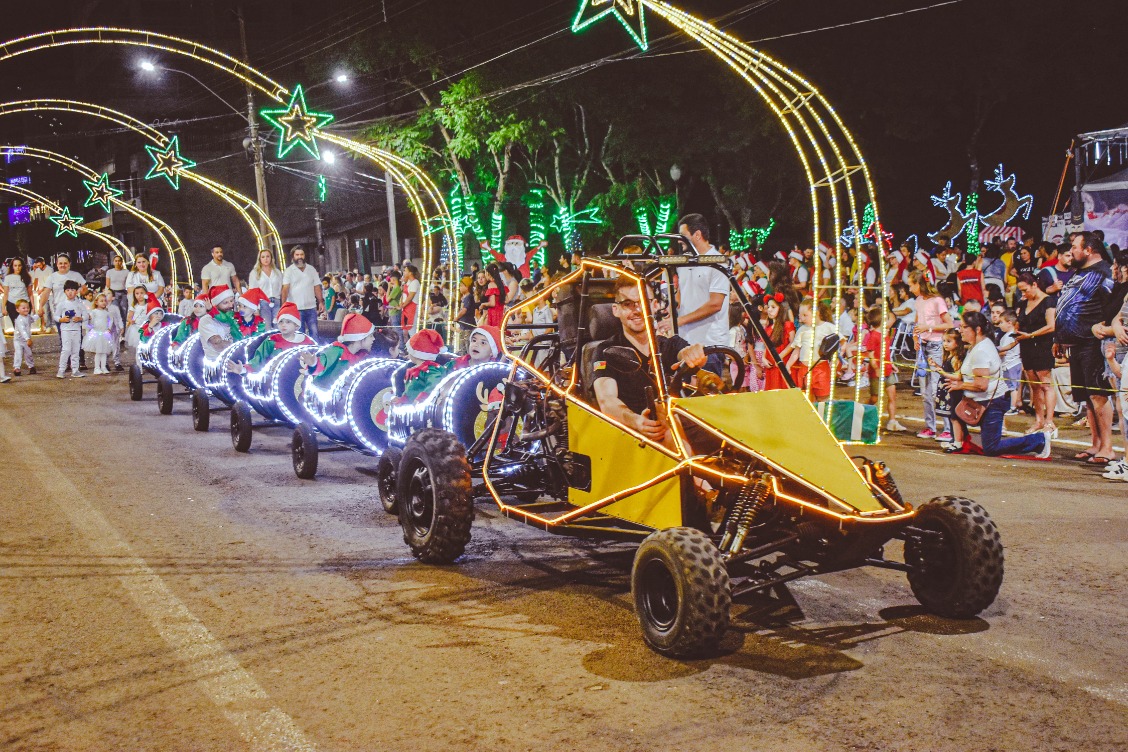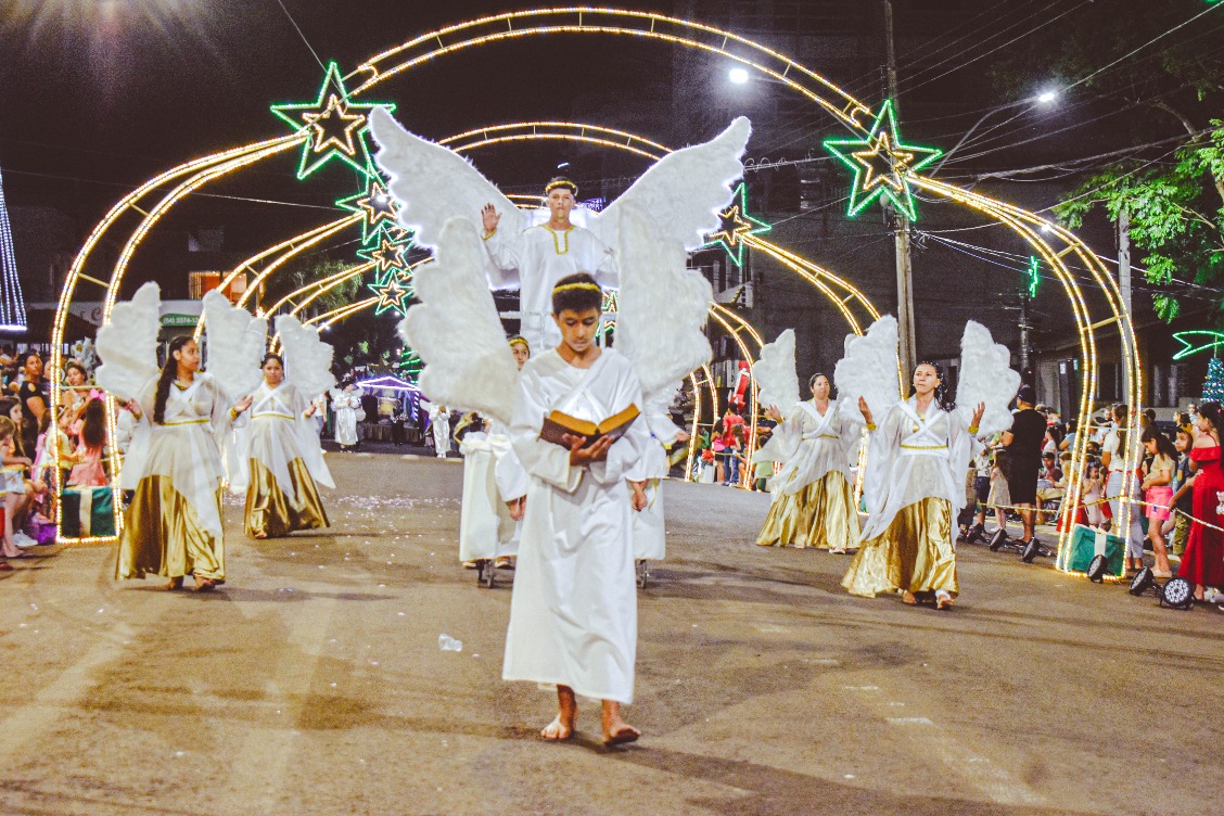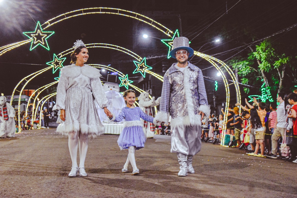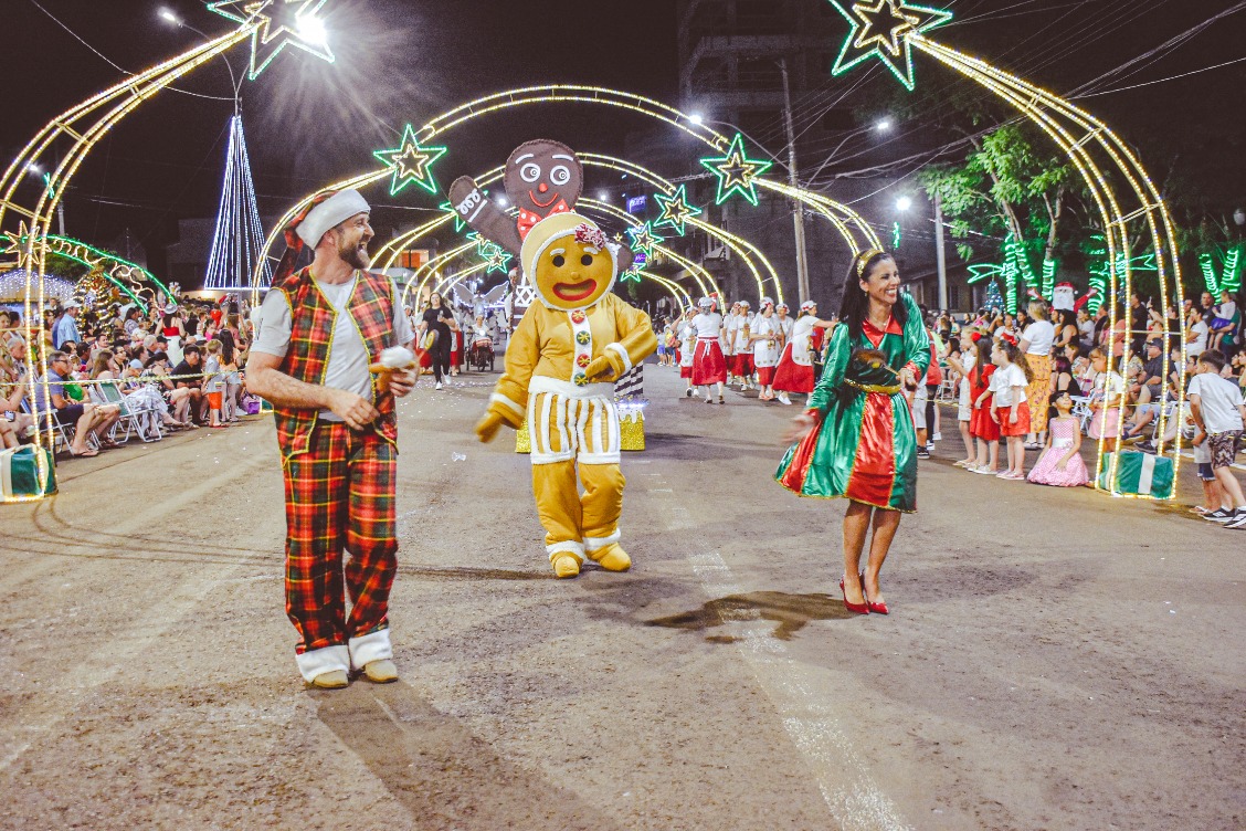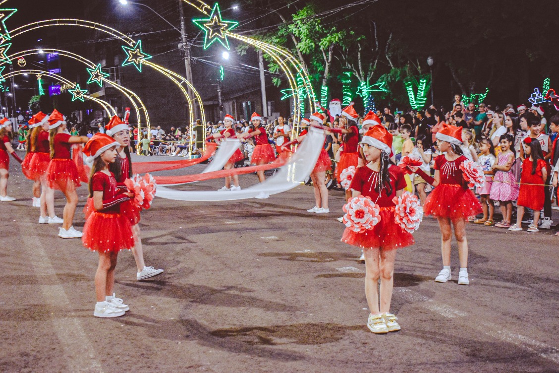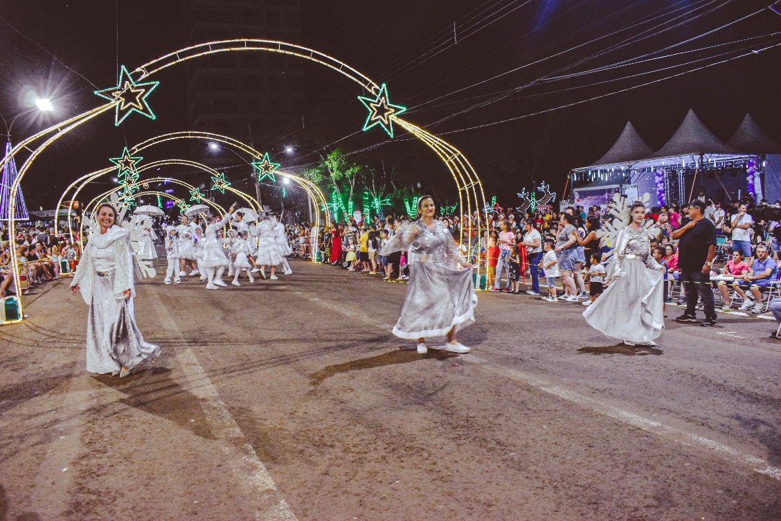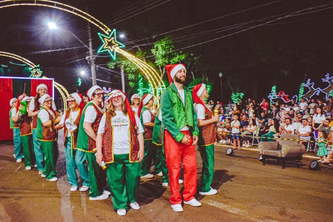 Com 22 alas temáticas, o desfile apresentou duendes, brinquedos, anjos, personagens, cenas tradicionais e histórias que remetem à magia do Natal. Os figurinos e coreografias especiais marcaram o momento e emocionaram o público presente.