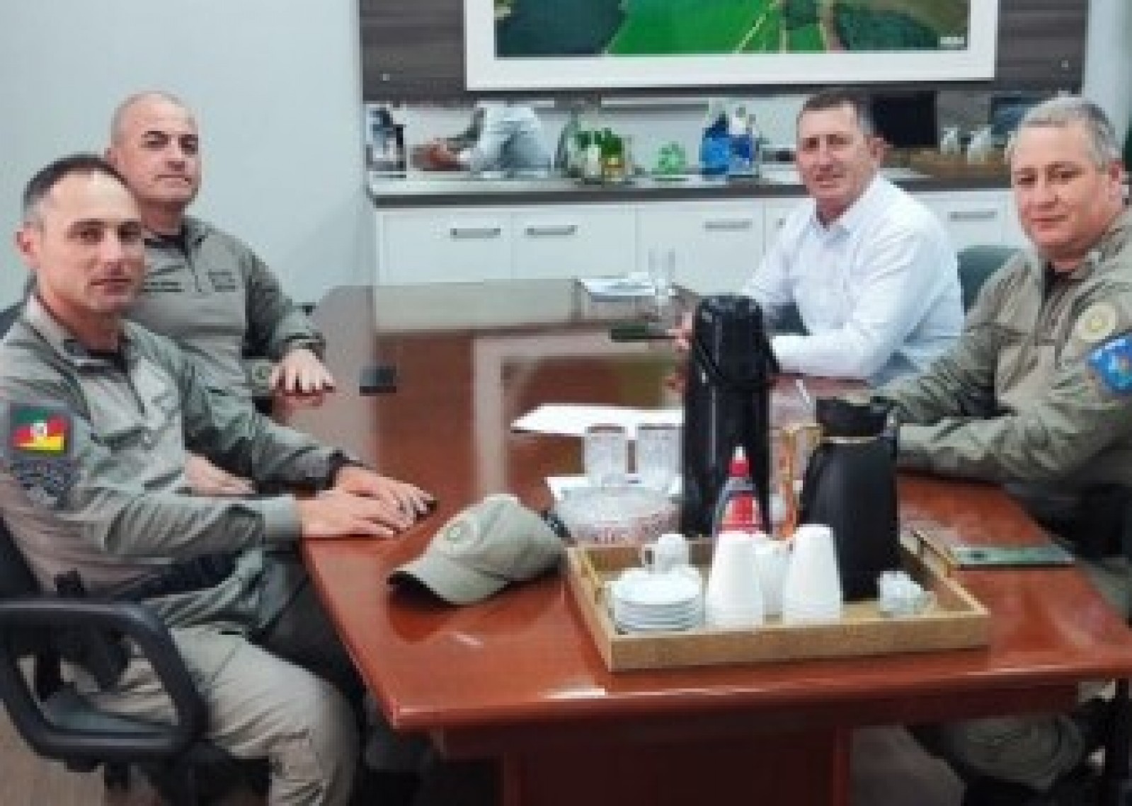 O Prefeito Jones Roberto Cecchin recebeu, em seu Gabinete, o efetivo da Brigada Militar para uma reunião com o Governo Municipal, com o objetivo de alinhar estratégias de segurança para a 74ª Romaria de Nossa Senhora Consoladora.