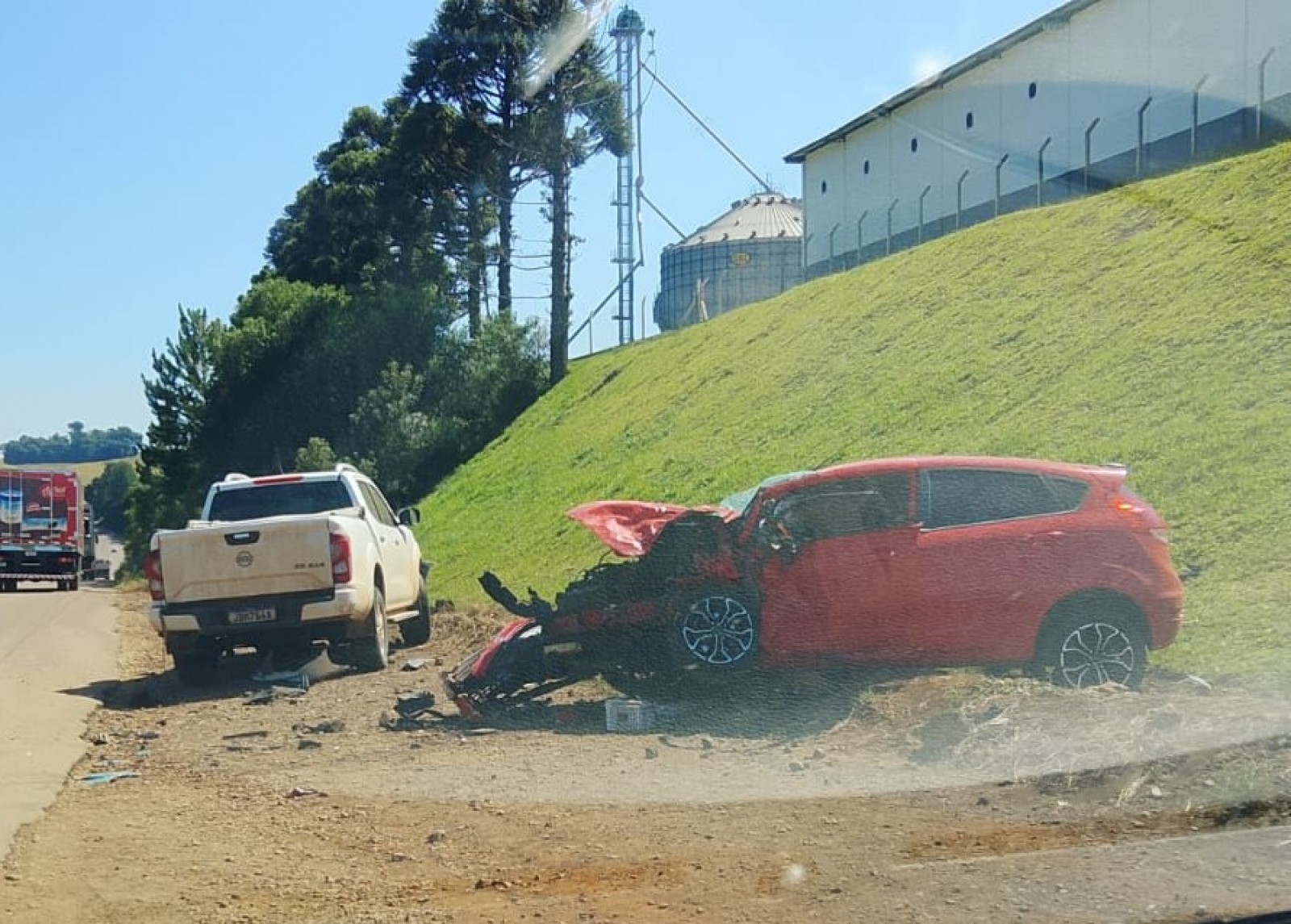 Segundo informações extraoficiais, um Ford Fiesta vermelho trafegava pela rodovia e teve a frente invadida por uma Nissan Frontier. O relato ainda depende de confirmação das autoridades.