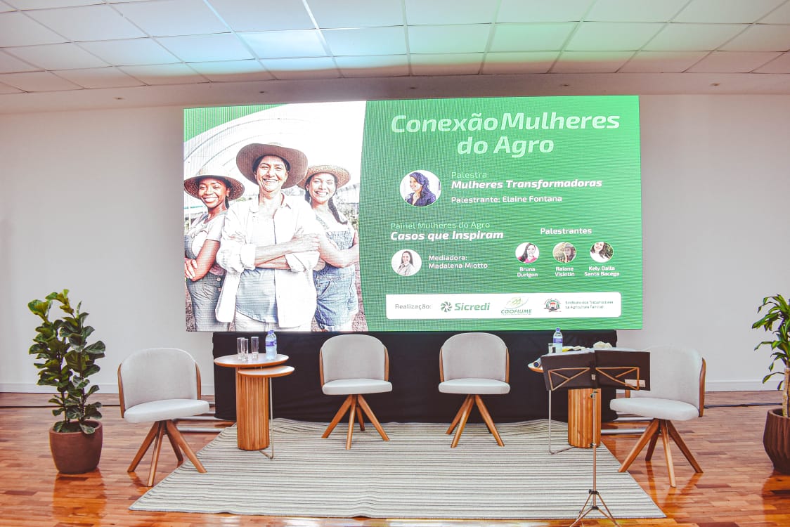 O encontro também contou com o Painel Mulheres do Agro – “Casos que Inspiram”, mediado por Madalena Miotto. Participaram do momento as convidadas Bruna Durigon, Raiane Visintin e Kely Dalla Santa Bacega, que compartilharam experiências e trajetórias no meio rural.