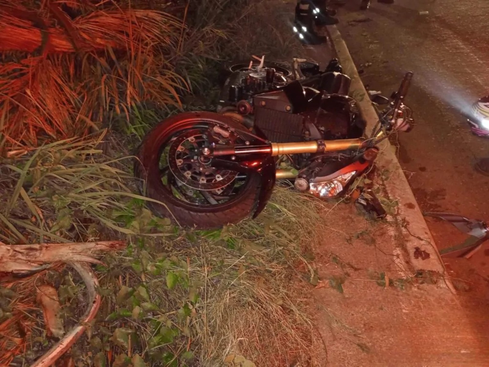 A motocicleta ficou destruída e foi removida ao pátio do Detran por serviço de guincho.