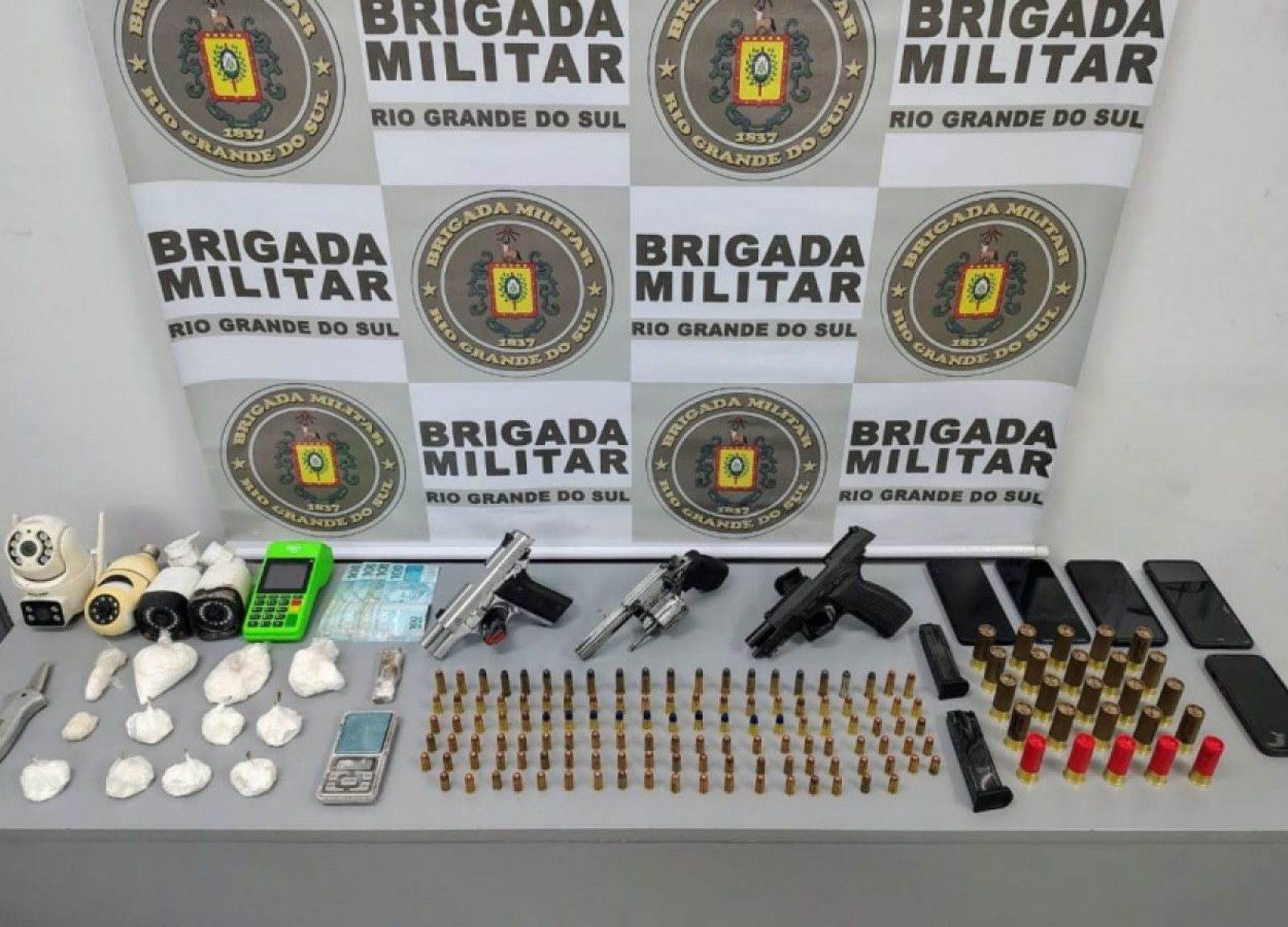 Durante ação policial no bairro Retiro, os policiais obtiveram êxito na apreensão de três armas de fogo: uma pistola calibre 9mm, uma pistola calibre .380 — esta com registro de furto na cidade de Santa Rosa no ano de 2022 — e um revólver calibre .38, além de 148 munições de diversos calibres, inclusive calibre 12, e carregadores. Também foram apreendidos aproximadamente 450g de cocaína, 18g de maconha, aparelhos celulares, câmeras de monitoramento, uma balança de precisão e dinheiro.