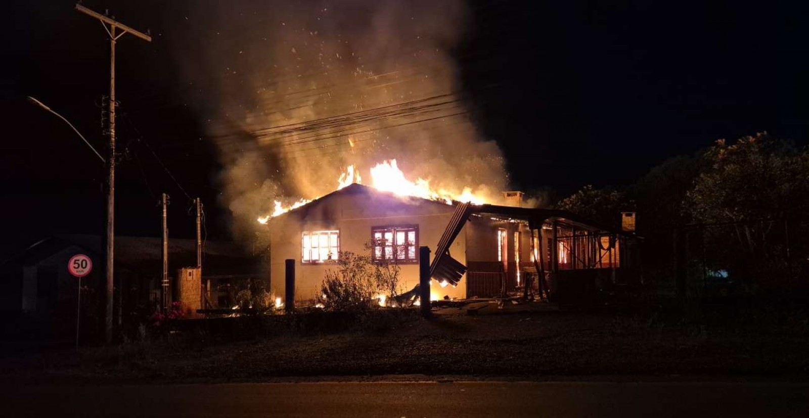 Uma residência de alvenaria foi completamente destruída por um incêndio na noite deste sábado (4), em Ibiaçá. As chamas começaram por volta das 21h e se alastraram rapidamente.