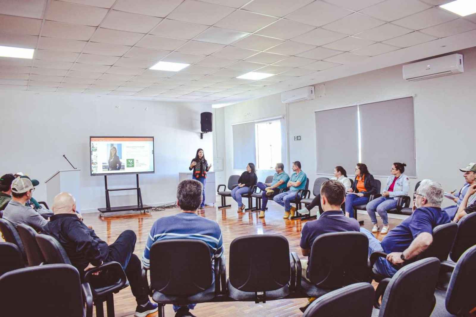 Após a reunião, os participantes acompanharam uma palestra com a jornalista Gilkiane Cargnelutti sobre o projeto Comunicação no Agro. Ela e o ex-prefeito de Jacutinga, Beto Bordin, foram recebidos pelo prefeito Jones Roberto Cecchin antes do encontro.