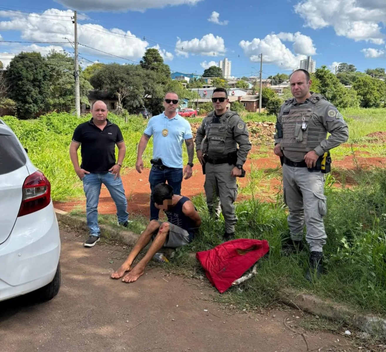O homem foi avistado na rua Domingos Luiz Ughini, mas tentou escapar ao perceber a aproximação da equipe. Ele abandonou a motocicleta e correu a pé até se esconder em uma área de vegetação próxima. No entanto, o proprietário da empresa de vigilância e um policial que reside no bairro acompanharam o suspeito. Após sair do matagal, ele foi localizado e detido.