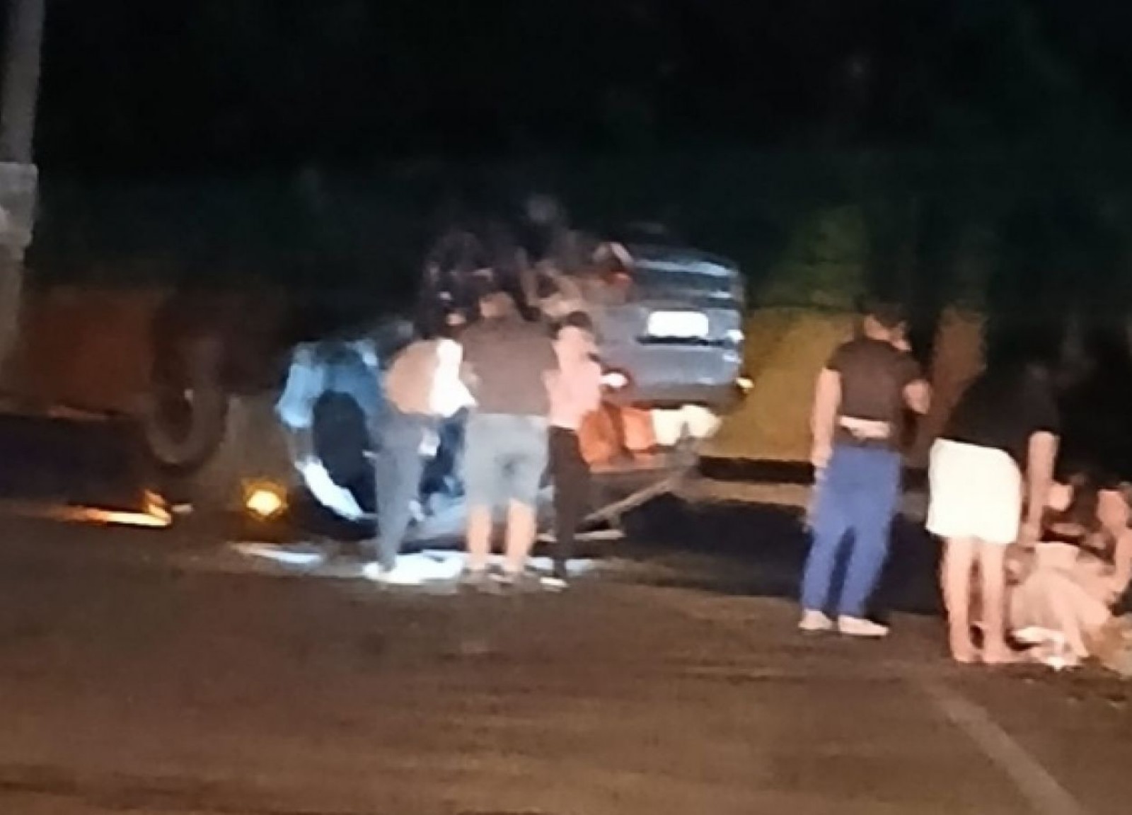 Os cinco ocupantes do Hyundai Creta, apesar do capotamento, saíram ilesos do acidente.