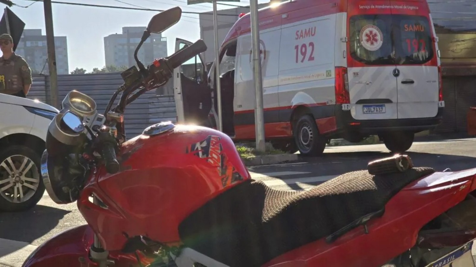 De acordo com o apurado no local, o acidente ocorreu quando uma motocicleta Honda Twister, de placas padrão Mercosul, estava parada no semáforo no cruzamento com a rua Albino Lazaretti, sentido centro-bairro. Nesse momento, um Fiat Argo branco, que trafegava no mesmo sentido, colidiu na traseira da moto, projetando o condutor ao solo.