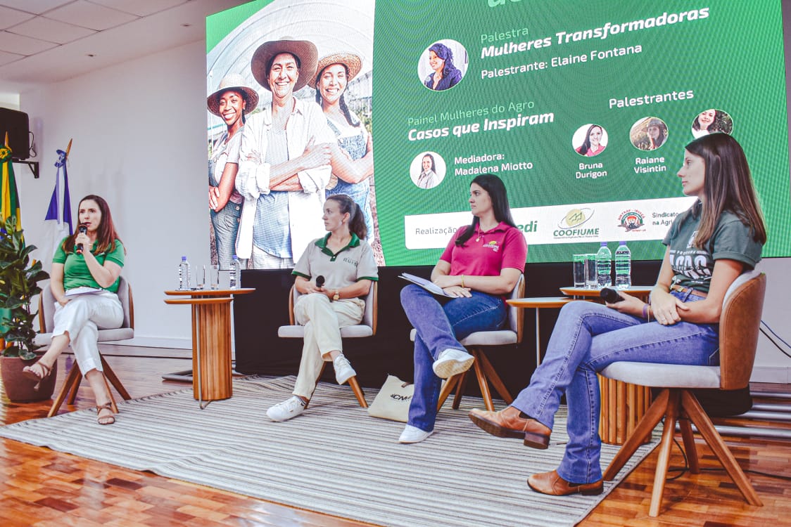 O encontro também contou com o Painel Mulheres do Agro – “Casos que Inspiram”, mediado por Madalena Miotto. Participaram do momento as convidadas Bruna Durigon, Raiane Visintin e Kely Dalla Santa Bacega, que compartilharam experiências e trajetórias no meio rural.