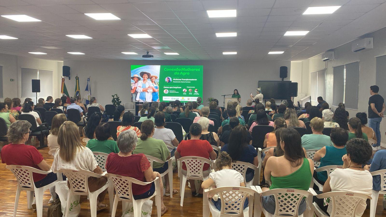 Produtoras rurais, lideranças e profissionais do setor participaram, na tarde desta quinta-feira, dia 12, do evento “Conexão Mulheres do Agro”, realizado no Salão Nobre da Prefeitura de Ibiaçá.