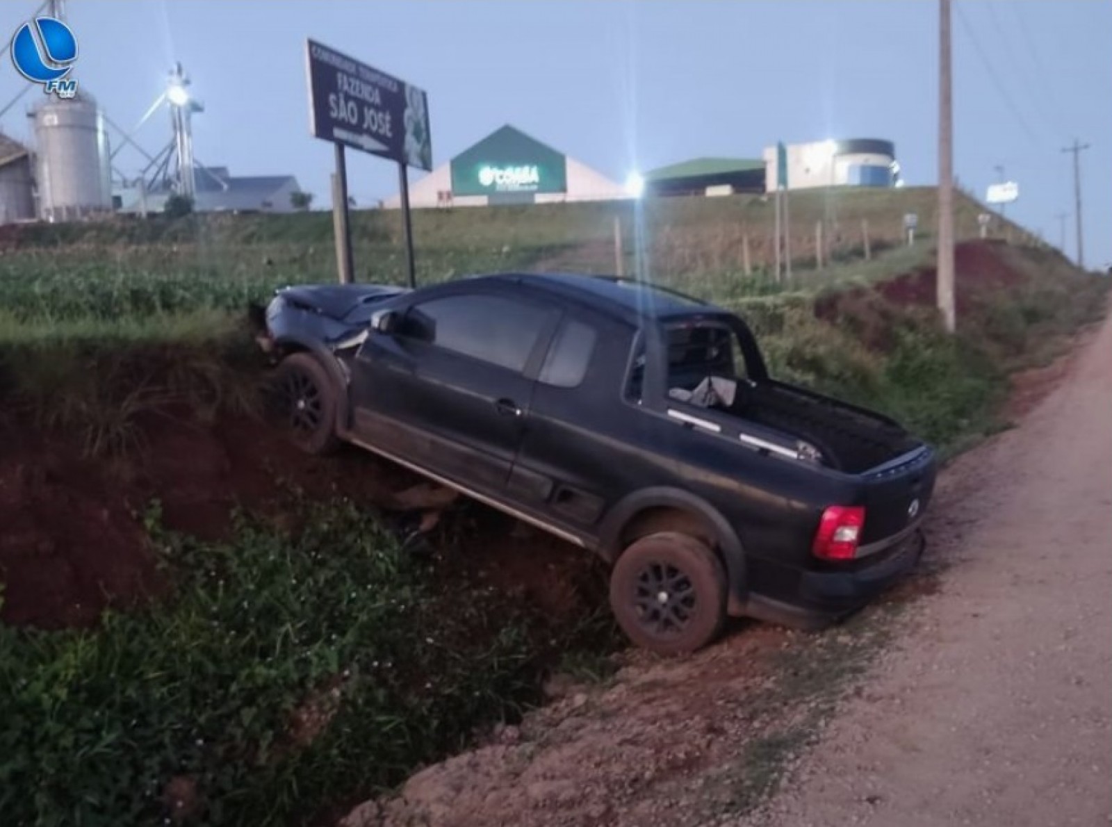A ocorrência foi atendida por volta das 3h30, no trevo de acesso a Sananduva, onde uma caminhonete VW Saveiro saiu da pista e acabou parando em um barranco.